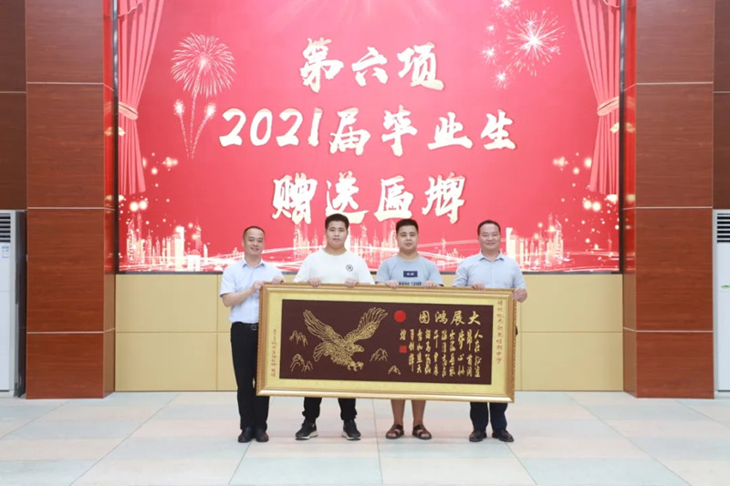 落其實(shí)者思其樹(shù),飲其流者懷其源。我校2021屆畢業(yè)生楊祖峰同學(xué)將“大展宏圖”牌匾送到校領(lǐng)導(dǎo)手中,表達(dá)培育感激之情。