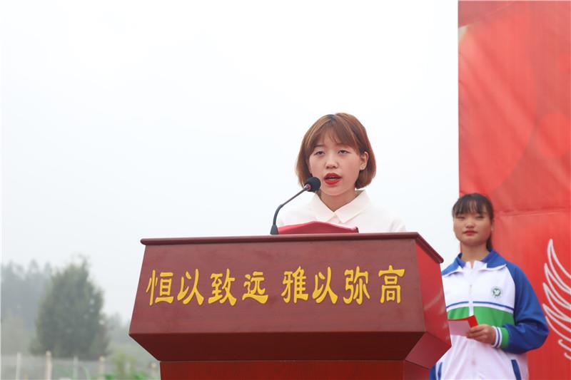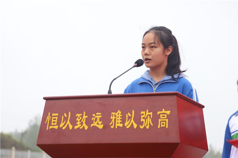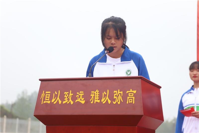 學生代表1802班姚湘粵同學立下錚錚誓言,要像雄鷹直沖云天,像水手乘風破浪,以汗水澆灌,用智慧耕耘,奪取六月桂冠。